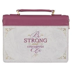 Let the quality construction of the Strong and Courageous Topas Pink Faux Leather Fashion Bible Cover protect your Bible as its message inspire you to