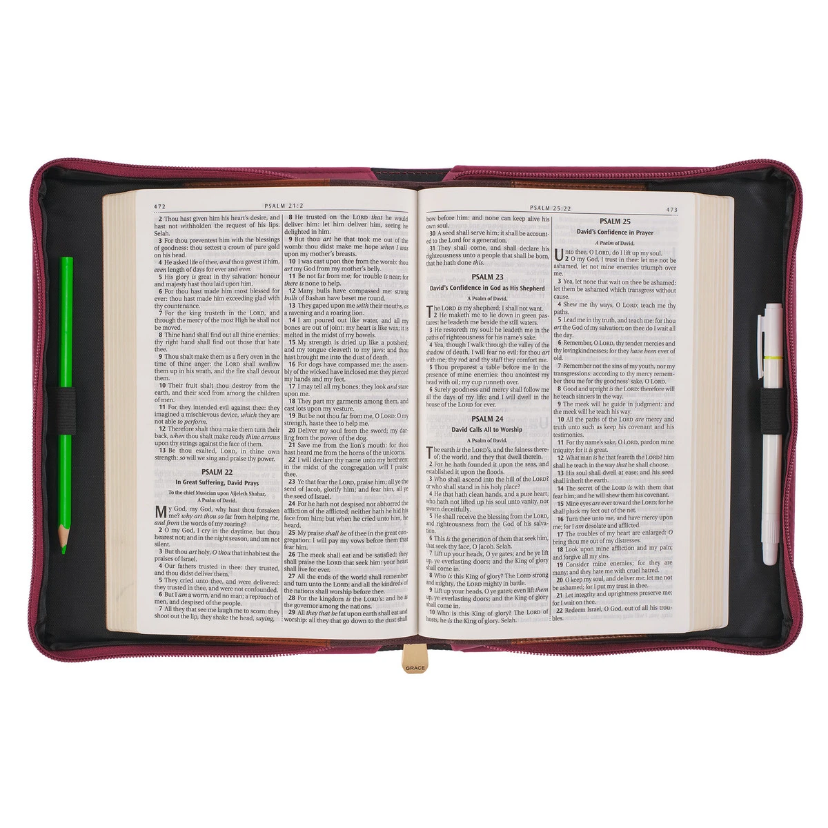 The Trust in the LORD Floral Pomegranate Red Faux Leather Fashion Bible Cover will be your daily reminder to release your fears into the hands of an