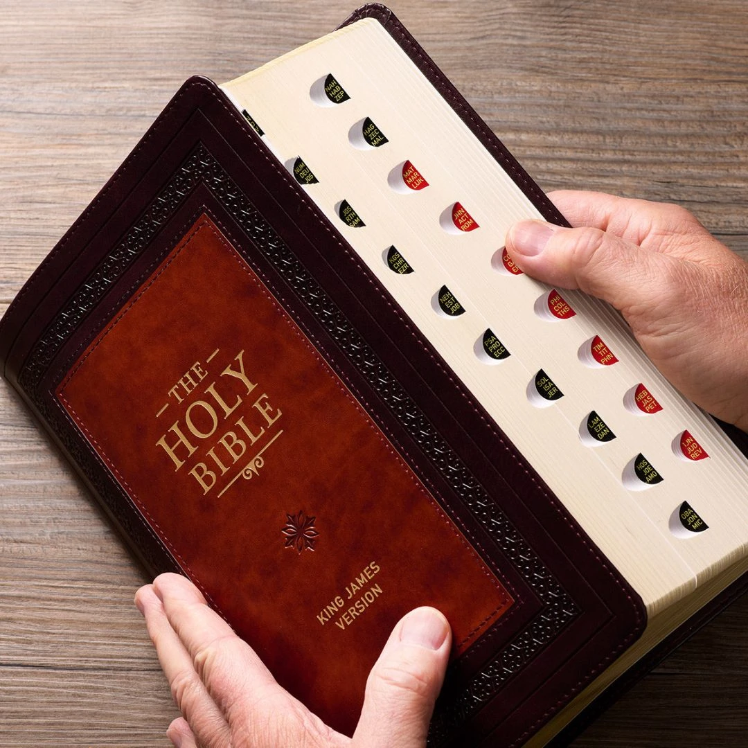 The Burgundy and Toffee Faux Leather Large Print King James Version Study Bible with Thumb Index is full of invaluable study notes, essays, and insights,