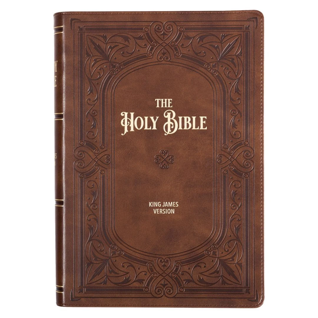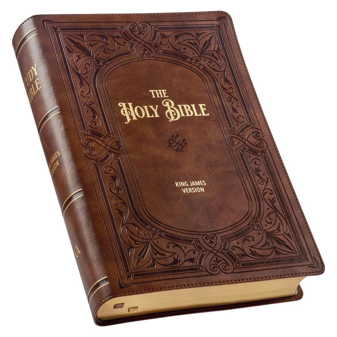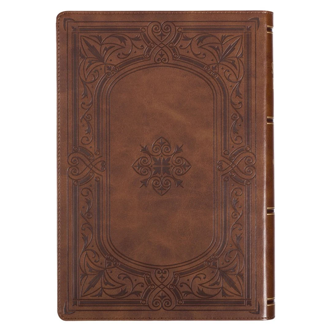 The polished Art Nouveau Framed Saddle Tan Faux Leather King James Study Bible with Thumb Index will introduce a new way of studying the classic King