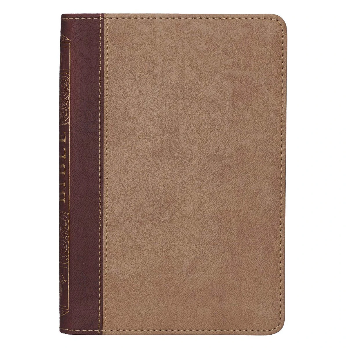 The Brown Two-tone Faux Leather Compact King James Version Bible features the Classic King James text, in a highly portable Bible format wrapped in a
