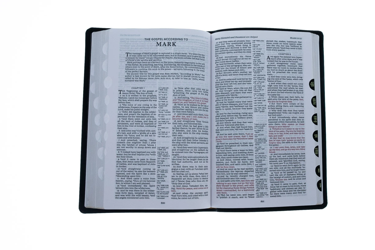 The literary beauty of the King James Version, handy and easy to carry, with the readability of Thomas Nelson’s custom KJV font. The slim design of the KJV Thinline Reference Bible means you can bring it along, wherever your day takes you. And with features like a center-column reference system, book introductions, a concordance, words of Christ in red, and full-color maps, you’ll have the tools you need to get more out of God’s Word without having to pack more.Features Include: Beauty and clarity of the new Thomas Nelson KJV Font Center-column references Translation notes Presentation page Bible book introductions Miracles and parables of Jesus Reading plan Words of Christ in red Concordance Full-color maps Ribbon marker Gilded page edges 8.9 point print size