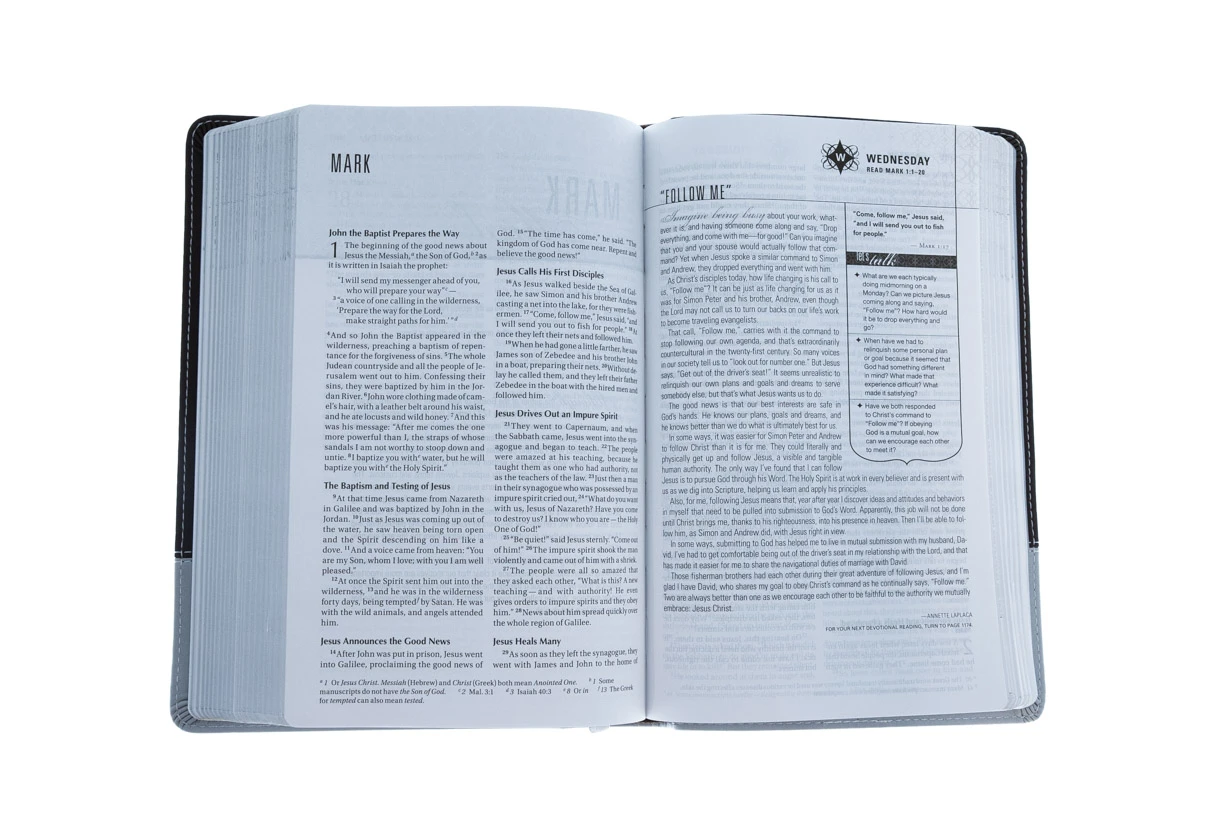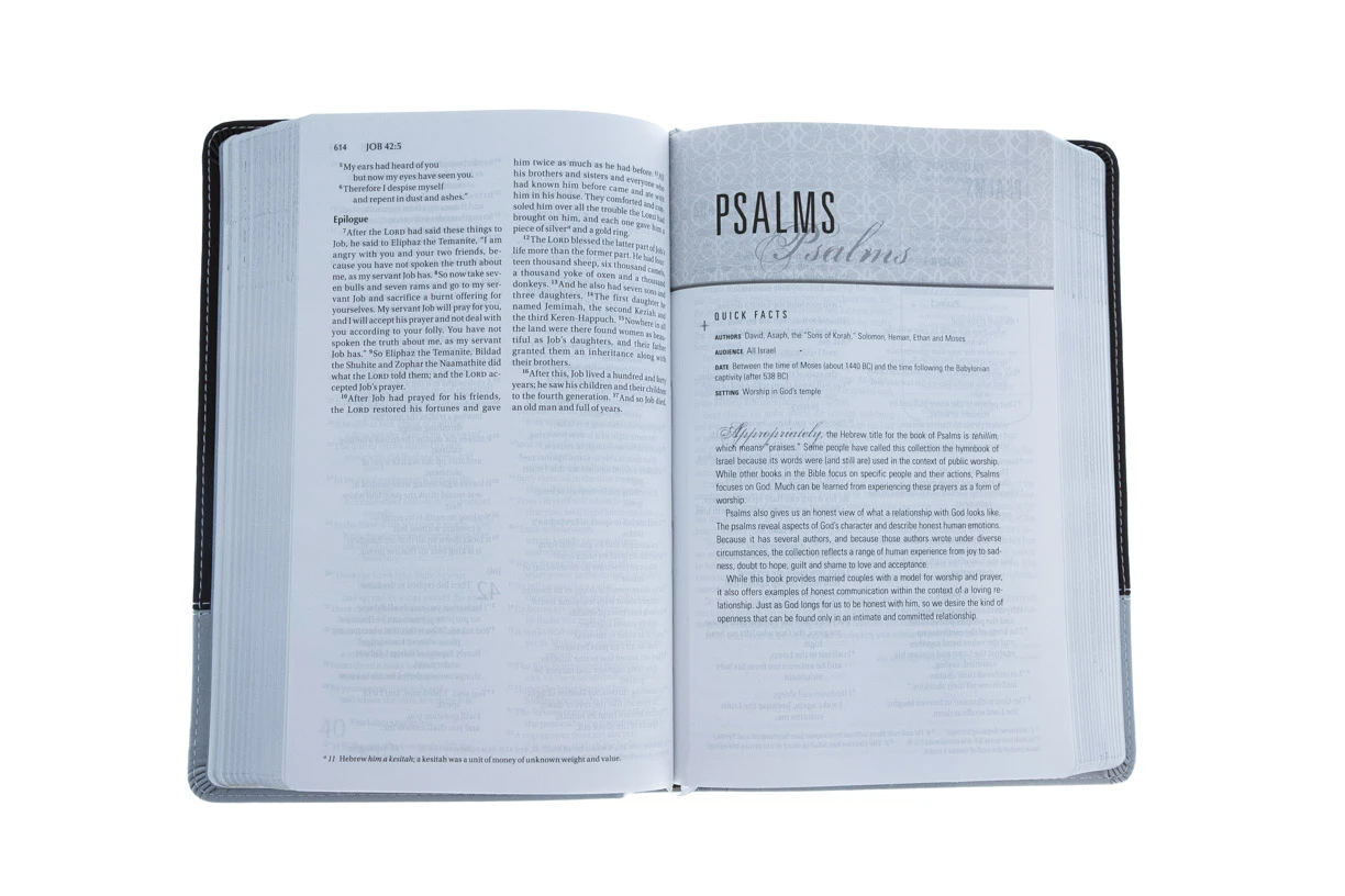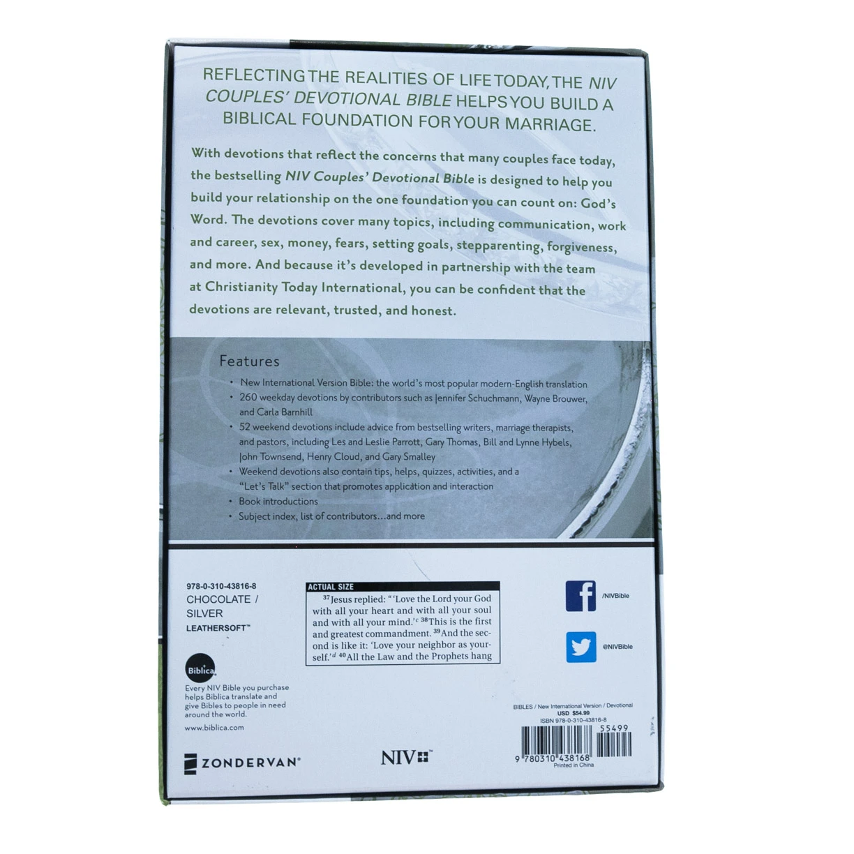 A chocolate/silver Italian Duo-Tone™ devotional Bible for engaged and married couples who are seeking to put God first in their marriage and build a lasting and strong relationship with each other, the NIV Couples’ Devotional Bible covers a wide range of topics and contains special tips, helps, and activities to promote application and interaction.
