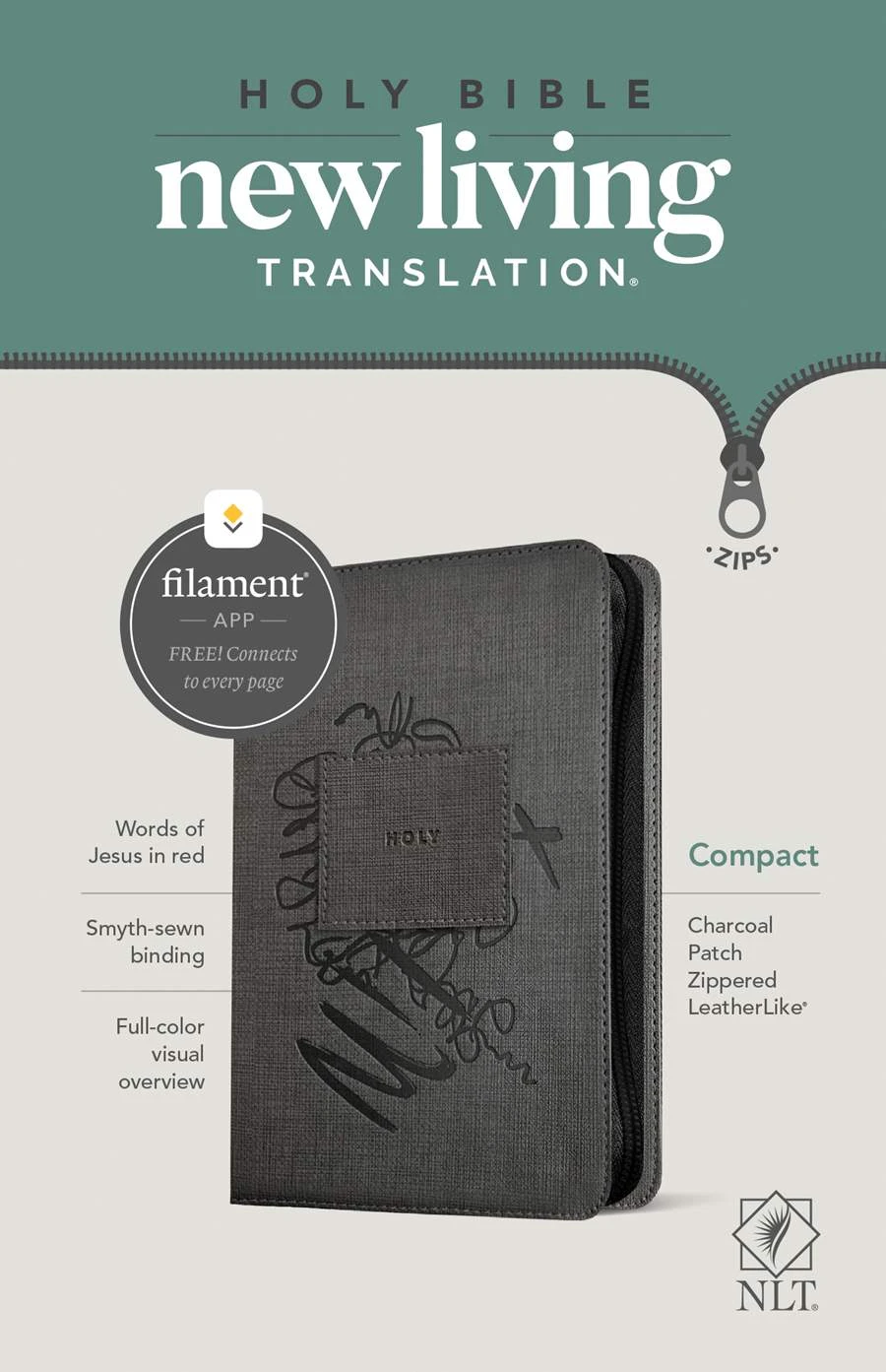 NLT Compact Zipper Bible, Filament Enabled Edition -Red Letter, Leatherlike, Charcoal Patch The compact edition of the new Filament-enabled Bible line