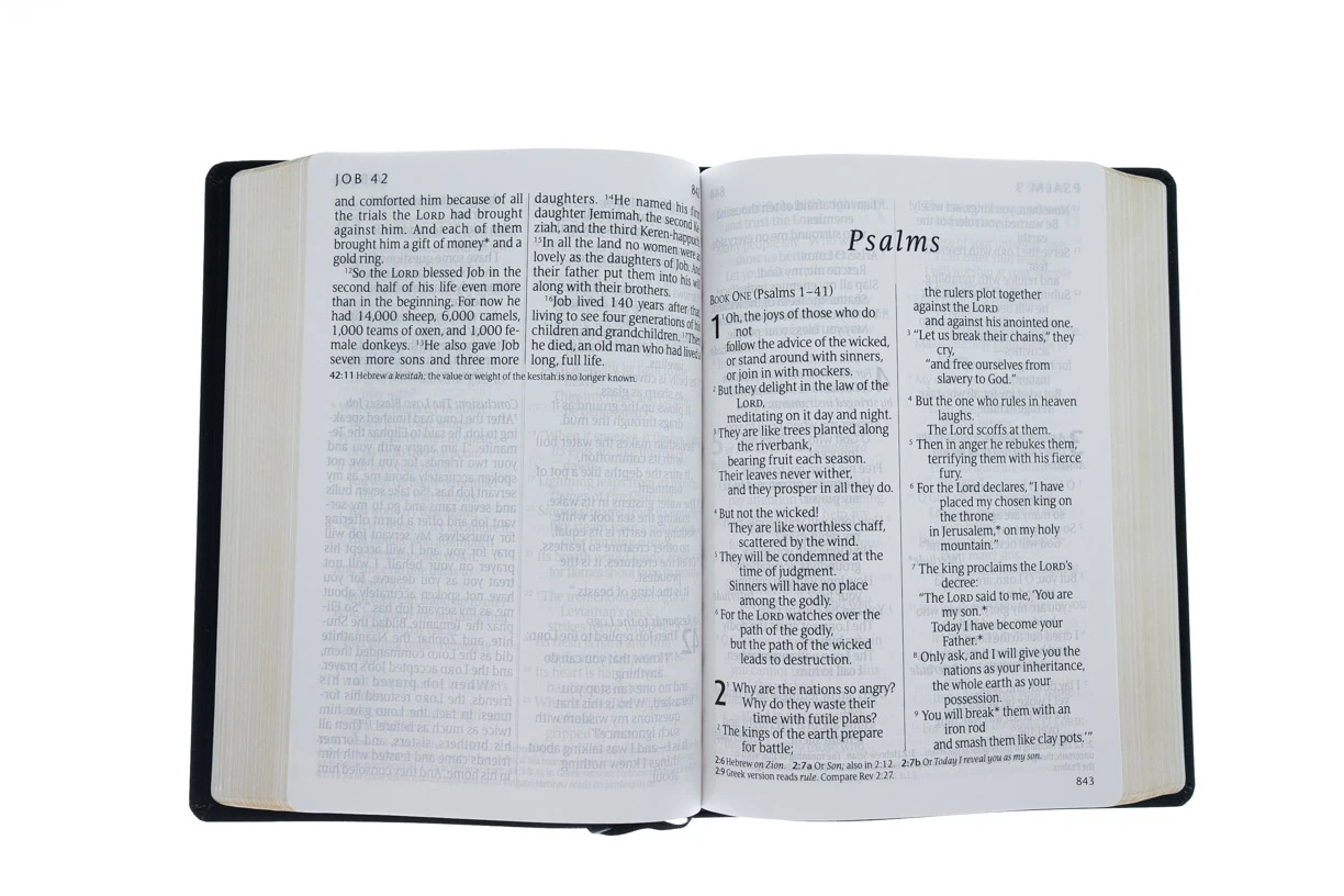 The easy-to-read, giant-print New Living Translation Bible is perfect when preferring a larger font. It has a 14-point font size, words of Christ in red,