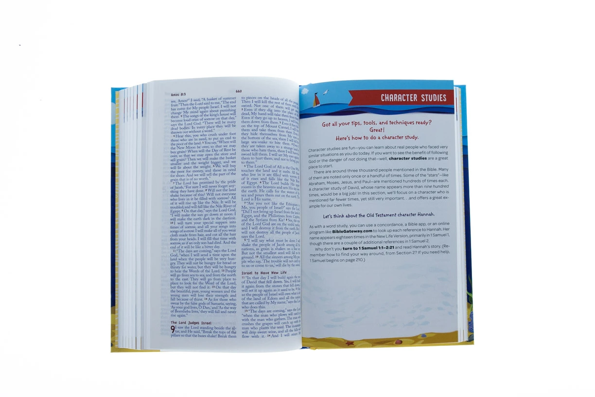 Want to know God better? Then learn to study His Word! This exciting Dive In! Kids’ Study Bible will guide you into a lifelong adventure of learning. Combining the easy-to-understand New Life™ Version text and 36 colorful inserts that explain the why’s and how’s of Bible study, it’s perfect for kids ages 8 to 12. Inside, you’ll find reasons to study the Biblefascinating background on scripturehow to dive into God’s Word to learn it for yourself Plus, you’ll be guided through your own study of Bible characters like Hannah and Noahimportant words like forgive and temptkey scriptures like Romans 12:1–2 The Dive In! Kids’ Study Bible will show you how to approach God’s Word in fresh and exciting ways. Make a big splash—go deep into scripture yourself!